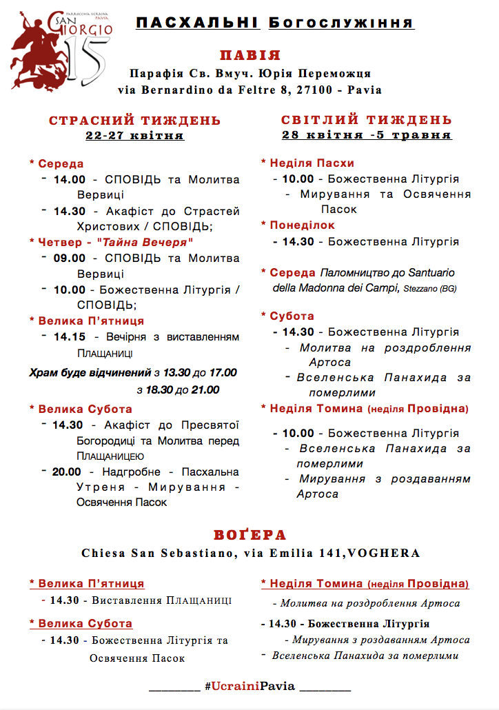 Розклад Богослужінь "Пасха - 2019"